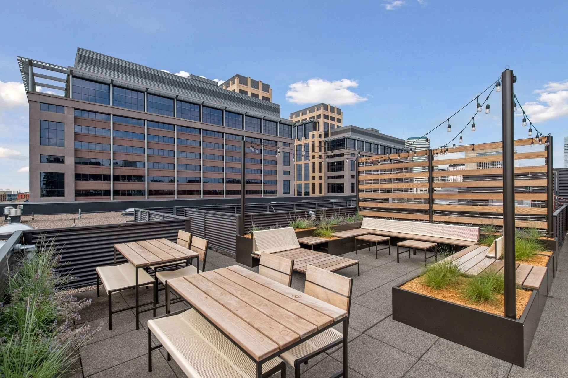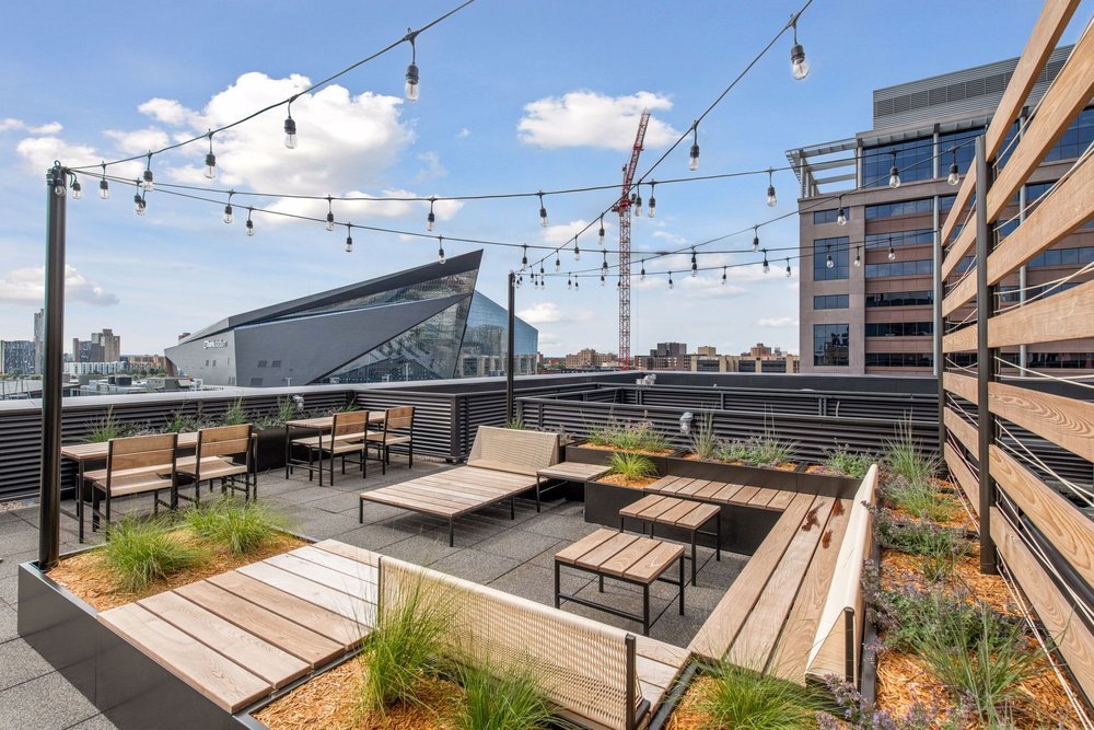 The community seemed pretty happy about their upgraded space. Before the planters it had been pretty lifeless, and the sparse furniture which had occupied the space previously didn’t invite people to stay long. Now they can take in views of US Bank Stadium and the Guthrie Theater from a variety of intimate spaces created for a wide variety of uses, from work to dining, sunbathing to herb gardening, our partnership with PEBL on this project resulted in a fully considered and inviting community space.