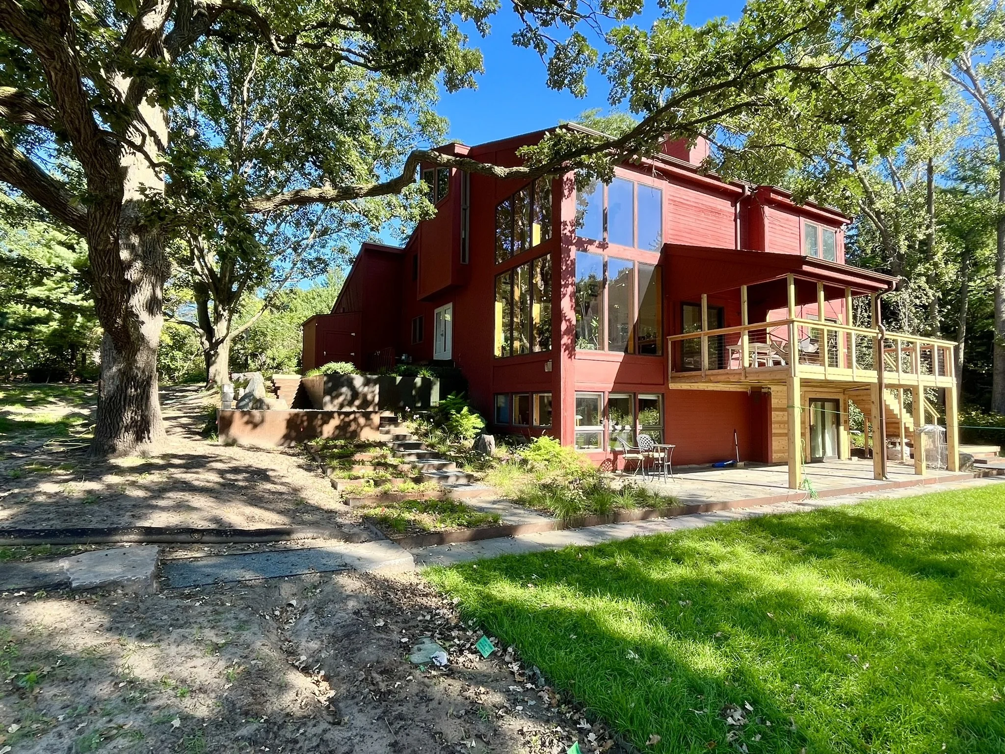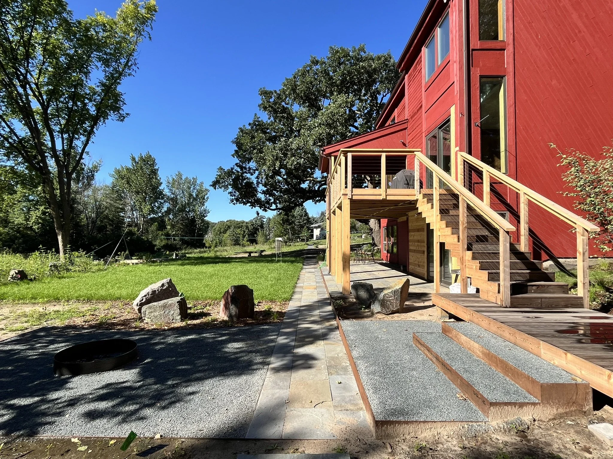 This North Oaks home was nestled between huge old trees which we needed to work carefully around to achieve a complete backyard makeover. Once again, the minimal footing requirements of our cor-ten wall systems allowed the home owner to keep their trees while making significant changes to the grading.